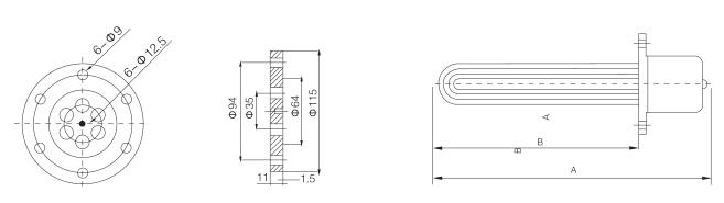 SRY系列油箱加热器适用于敞开式或封闭式的油箱中加热油,也可用于加热水或比油传热好的介质。高温度可达300℃。该电加热器由3支U型电热管与法兰焊接组成。具有功率密度小、热效率高、适用寿命长等优点。在使用时,其工作压力不得超过额定电压的 1.1倍,外壳应有效接地。电热管应全部浸入被加热的介质中。